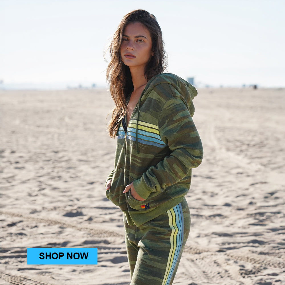 Aviator Nation is a 1970’s inspired California lifestyle brand. Hand-made and perfectly distressed hoodies and sweatpants are the foundation of what we do, but our aim is to unite a tribe of passionate individuals who want to inspire the world. Aviator Nation garments are handmade in our California factory.