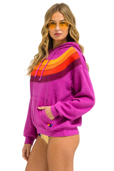 WAVE STRIPE 4 PULLOVER HOODIE RELAXED - MAGENTA // ORANGE