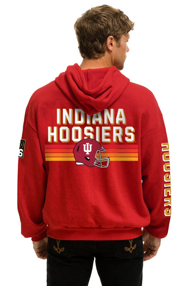 INDIANA UNIVERSITY CFP CHAMPIONS 2026 RELAXED PULLOVER HOODIE - CRIMSON+LOGO SOCK - WHITE+LOGO RAINBOW VINTAGE TRUCKER HAT