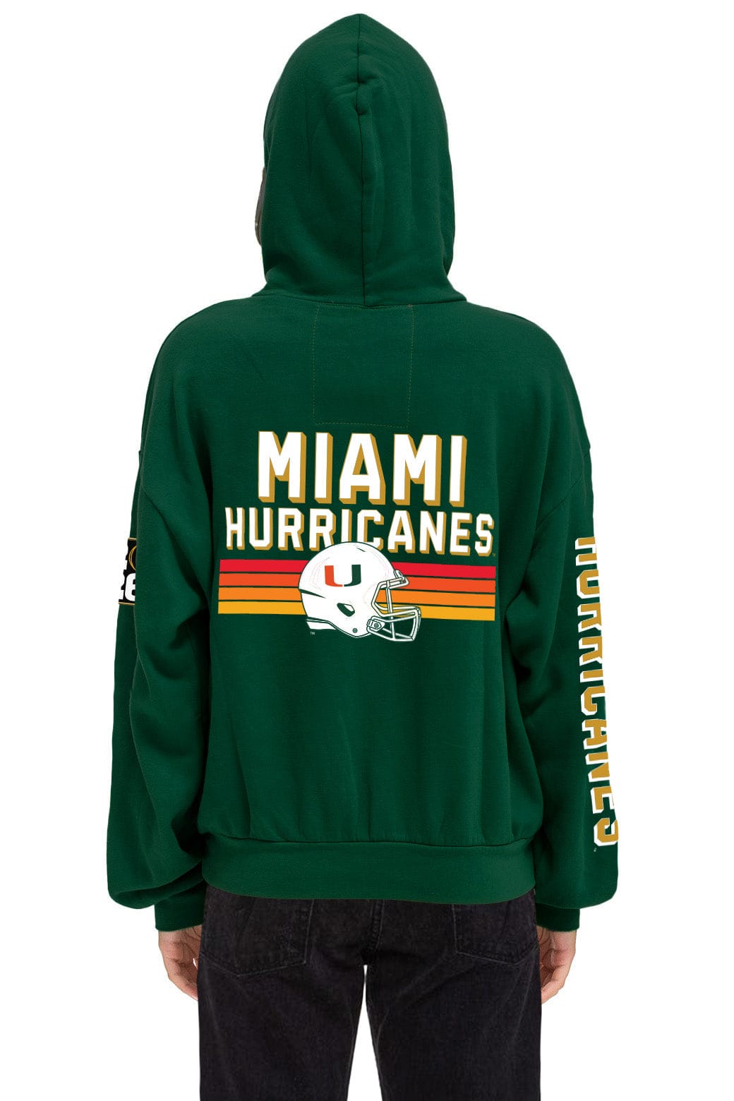 UNIVERSITY OF MIAMI CFP CHAMPIONS 2026 RELAXED PULLOVER HOODIE - MIAMI GREEN+LOGO SOCK - WHITE+LOGO RAINBOW VINTAGE TRUCKER HAT