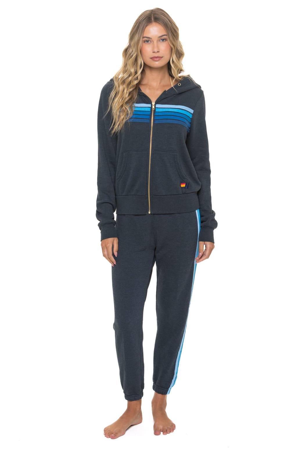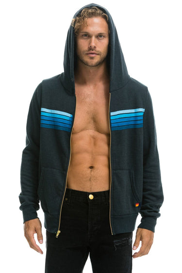 5 STRIPE HOODIE - CHARCOAL // BLUE