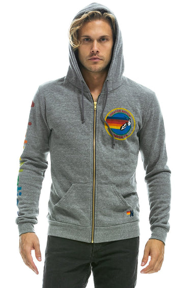 AVIATOR NATION AUSTIN HOODIE - HEATHER GREY+LOGO SOCK - WHITE+LOGO RAINBOW VINTAGE TRUCKER HAT