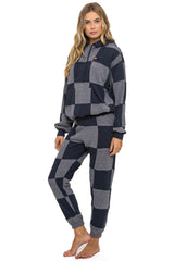 CHECK QUILT RELAXED PULLOVER HOODIE - HEATHER // CHARCOAL