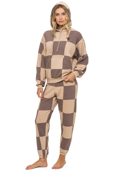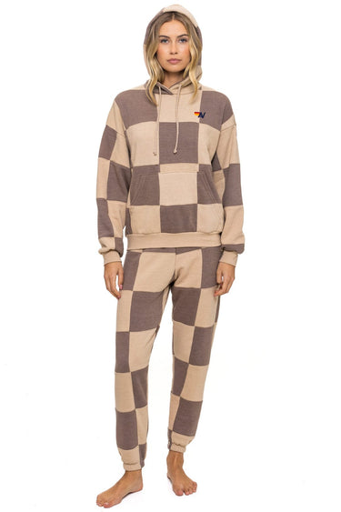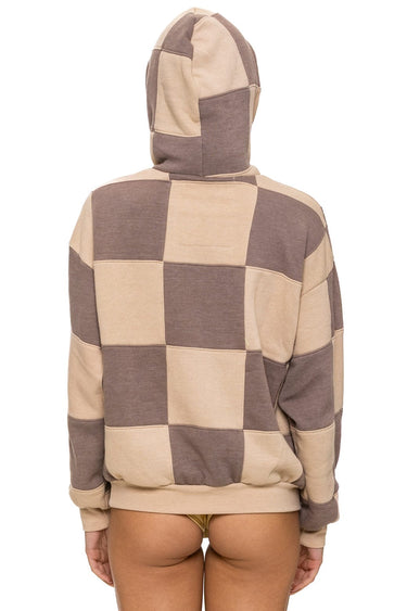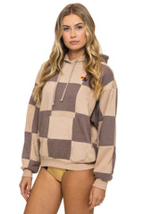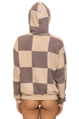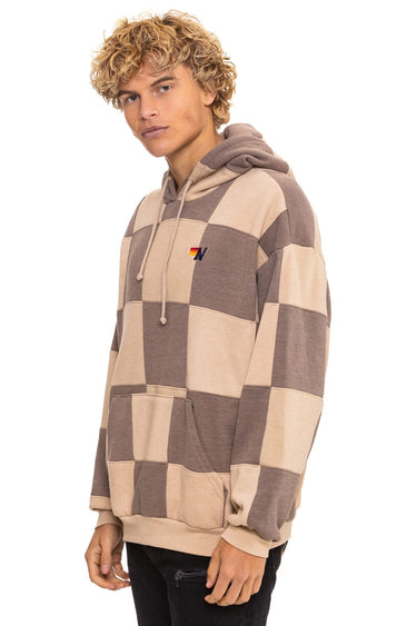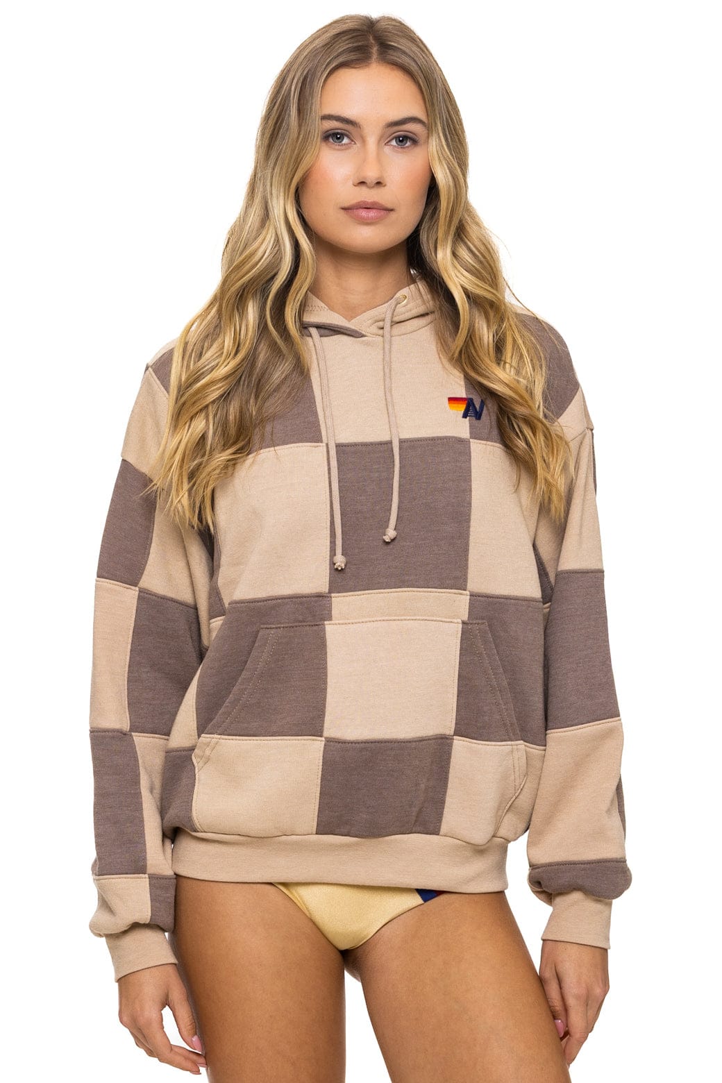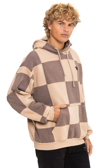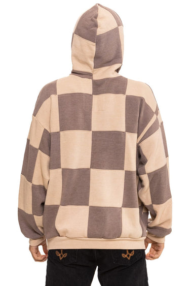 CHECK QUILT RELAXED PULLOVER HOODIE - SAND // TAUPE