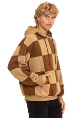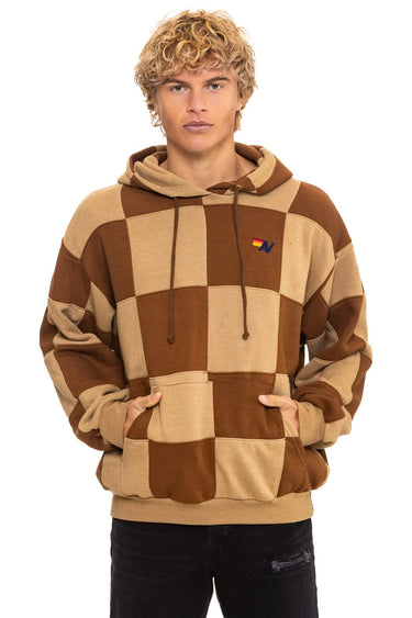 CHECK QUILT RELAXED PULLOVER HOODIE - TAN // CINNAMON
