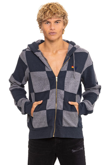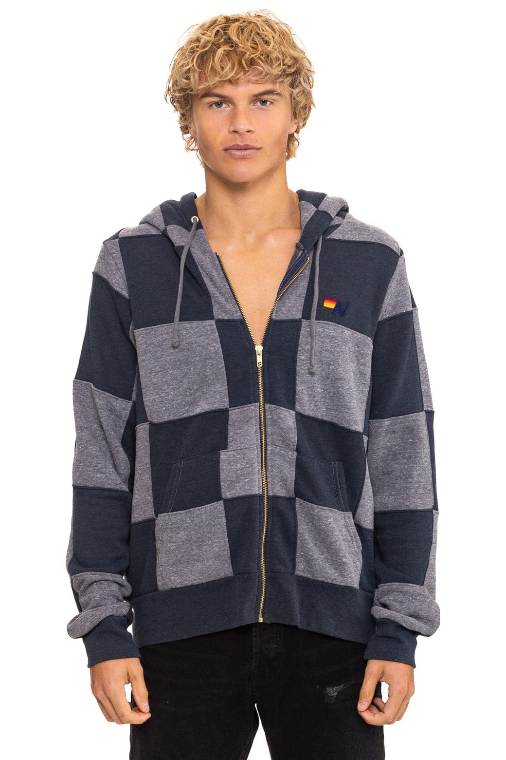 CHECK QUILT ZIP HOODIE - HEATHER // CHARCOAL