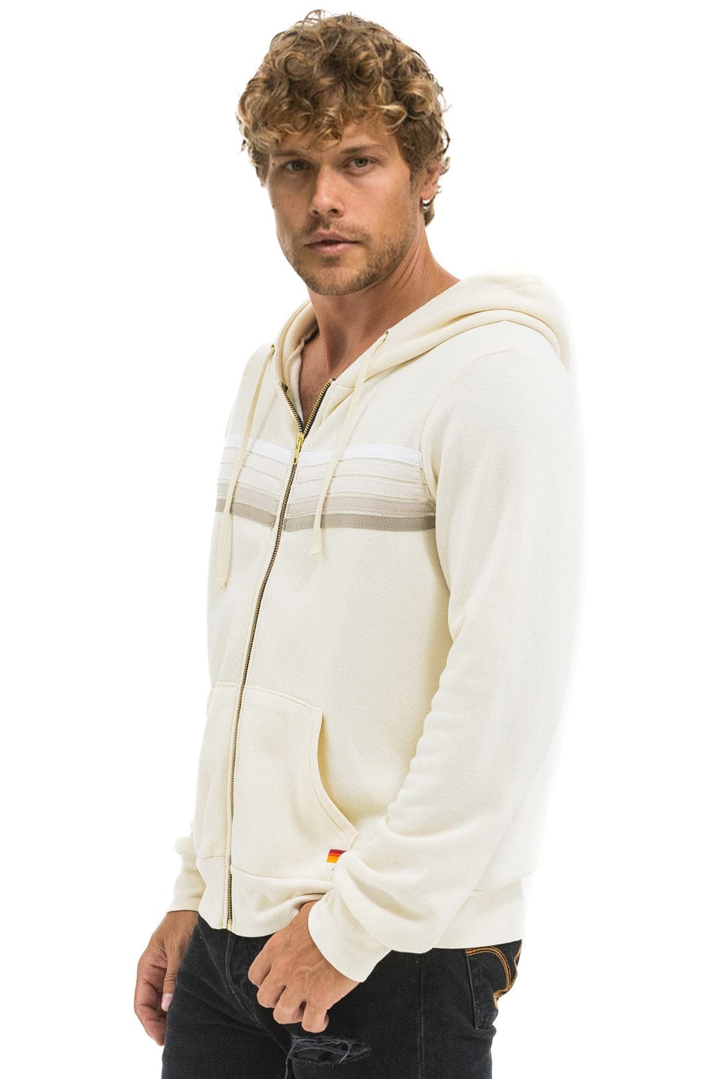 5 STRIPE HOODIE - VINTAGE WHITE // WHITE GREY