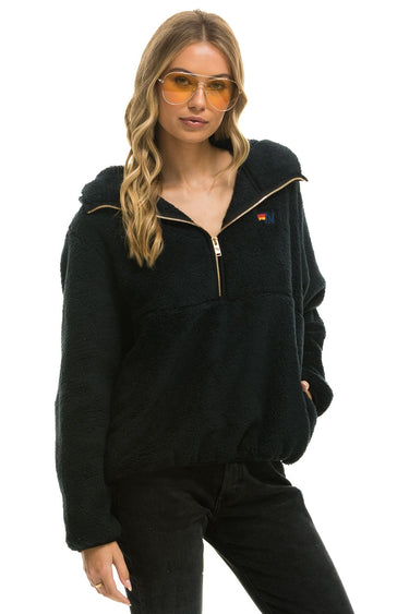 TEDDY APRES HOODED HALF ZIP JACKET - BLACK
