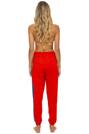 5 STRIPE SWEATPANTS - RED+LOGO SOCK - WHITE+LOGO RAINBOW VINTAGE TRUCKER HAT