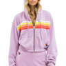 5 STRIPE CROPPED ZIP HOODIE RELAXED - MAUVE // WHITE NEON