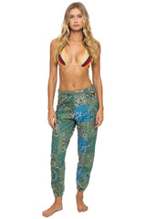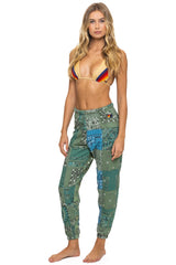 BANDANA QUILTED SWEATPANTS - GREEN+LOGO SOCK - WHITE+LOGO RAINBOW VINTAGE TRUCKER HAT