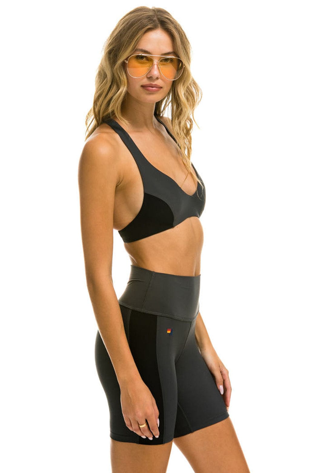 SPEED 6IN HI-RISE BIKER SHORT - TITANIUM+LOGO SOCK - WHITE+LOGO RAINBOW VINTAGE TRUCKER HAT