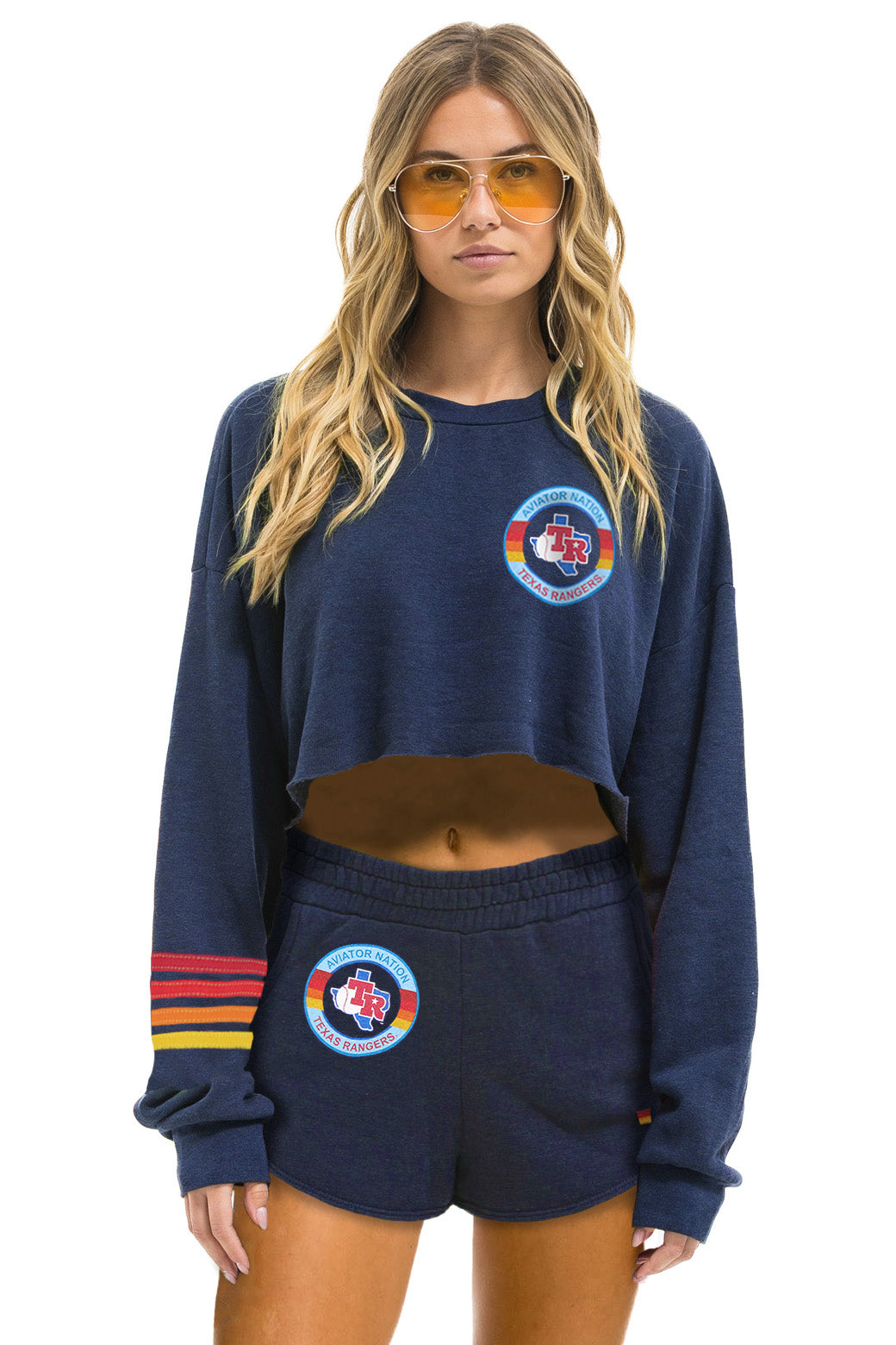 TEXAS RANGERS RUGBY STITCH CROPPED CREW SWEATSHIRT - NAVY