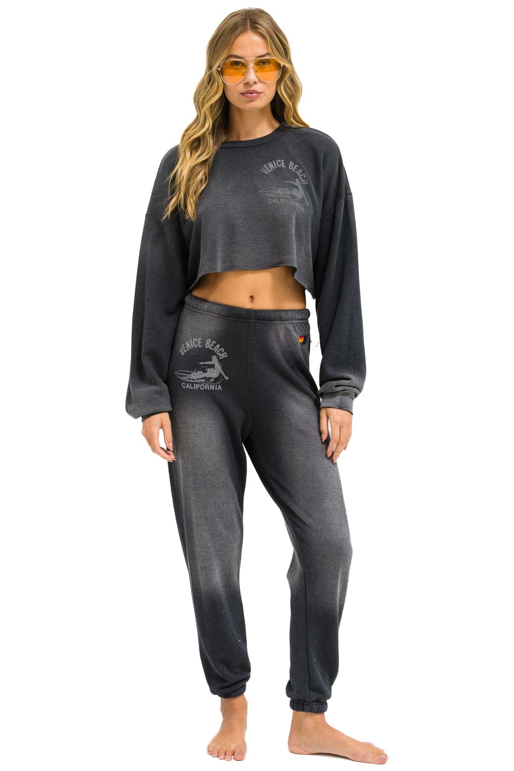 VENICE SURFER CROPPED CREW SWEATSHIRT RELAXED - FADED SMOKE+LOGO SOCK - WHITE+LOGO RAINBOW VINTAGE TRUCKER HAT
