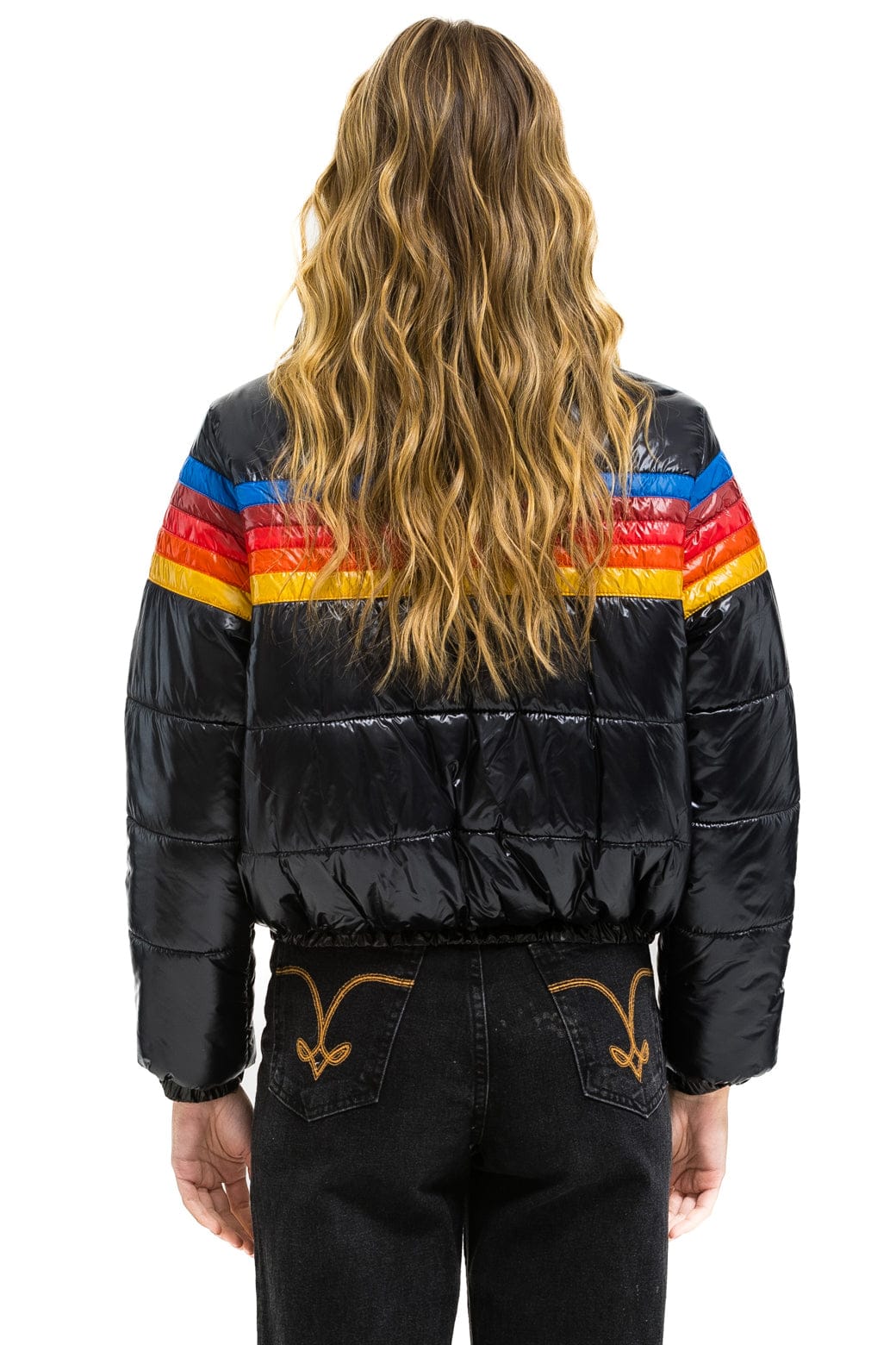 5 STRIPE APRES JACKET - GLOSSY BLACK+LOGO SOCK - WHITE+LOGO RAINBOW VINTAGE TRUCKER HAT
