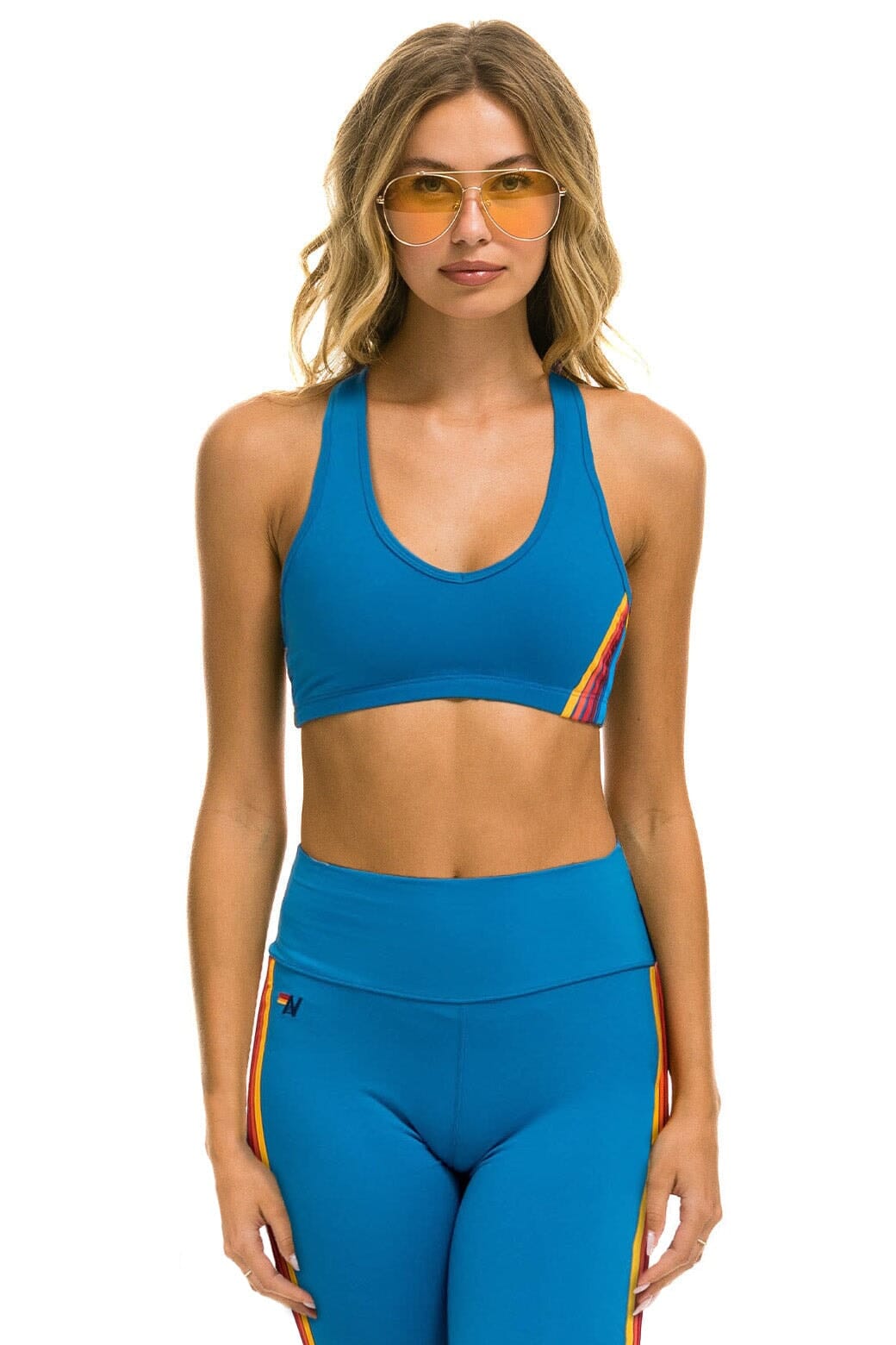 WOMEN'S 5 STRIPE V-CUT SPORTS BRA - CARRIBEAN