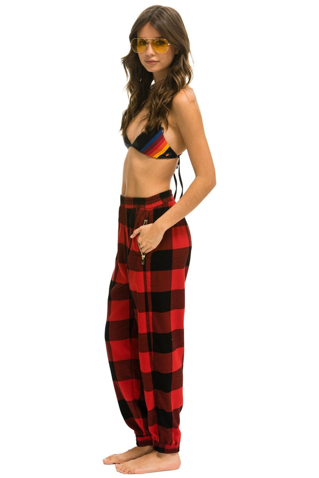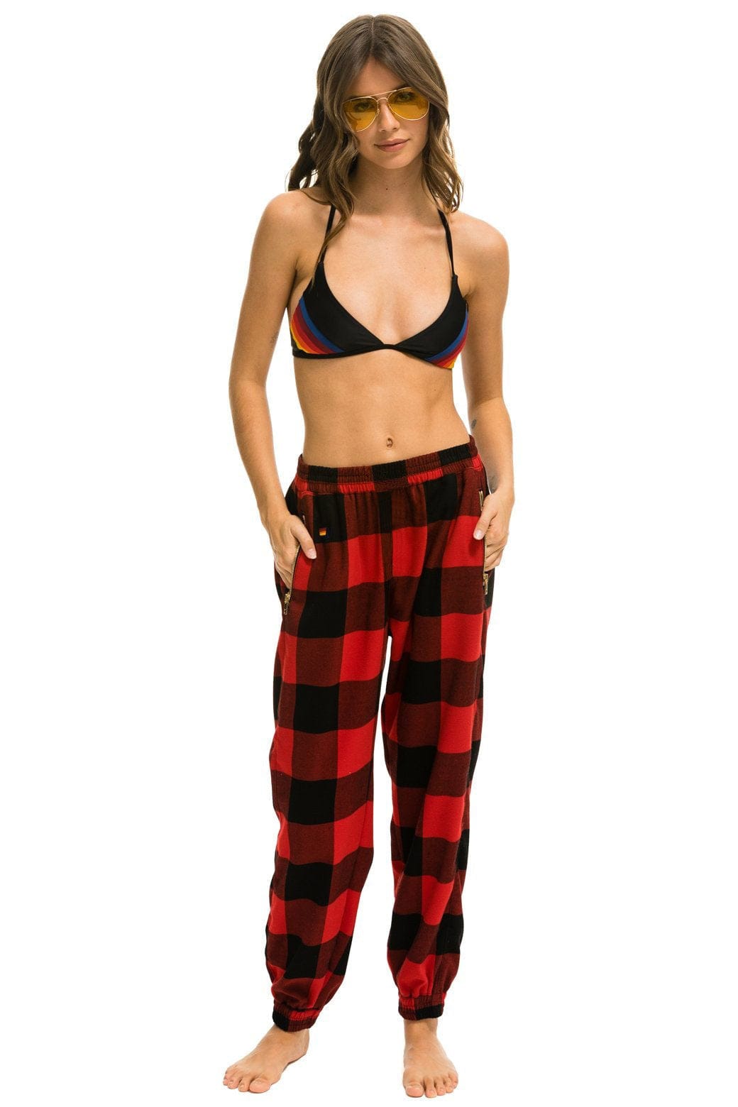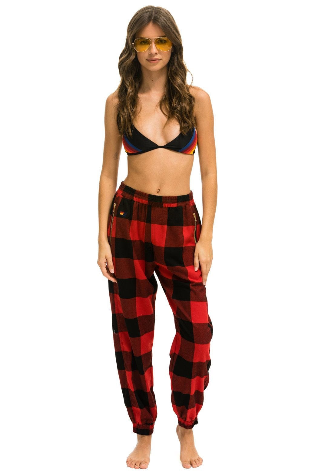 PLAID LODGE PANT - BUFFALO PLAID+LOGO SOCK - WHITE+LOGO RAINBOW VINTAGE TRUCKER HAT