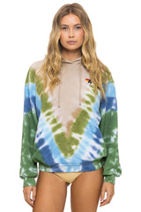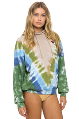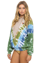 HAND DYED V RELAXED PULLOVER HOODIE - TIE DYE SAND // BLUE GREEN
