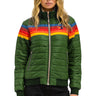 Our latest 60gm 5 stripe jacket is the new super light version of the original.  This jacket is a great layering piece for all conditions.  We recommend it for concerts, hikes, post surf sesh, travel, sunsets, sunrises, morning coffee with friends, dune buggy excursions and long walks with your dog.  You can sleep in it, eat in it, make out in it or even use it as a pillow if you get locked out of your house.  This jacket is extremely comfortable, breathable, warm and packable enough to stuff in your backpack or purse.  The exterior is our legendary, super soft and durable nylon with a coat of water repellent just in case you get caught in a storm.  The insulation is Primaloft gold 60gm to keep you warm without weighing you down.  Get ready to turn heads everywhere you go.