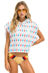 AVIATOR BOLT SLEEVELESS RELAXED CROPPED PULLOVER HOODIE - WHITE // USA