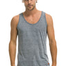 MEN'S BASIC TANK - HEATHER GREY+LOGO SOCK - WHITE+LOGO RAINBOW VINTAGE TRUCKER HAT