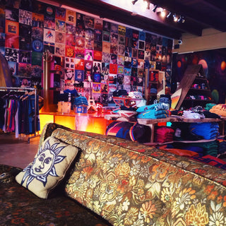 Walking into the Aviator Nation store on Abbot Kinney in Venice is like stumbling into a frat house with a feminine touch. Steely Dan, Doors and Grateful Dead album covers...