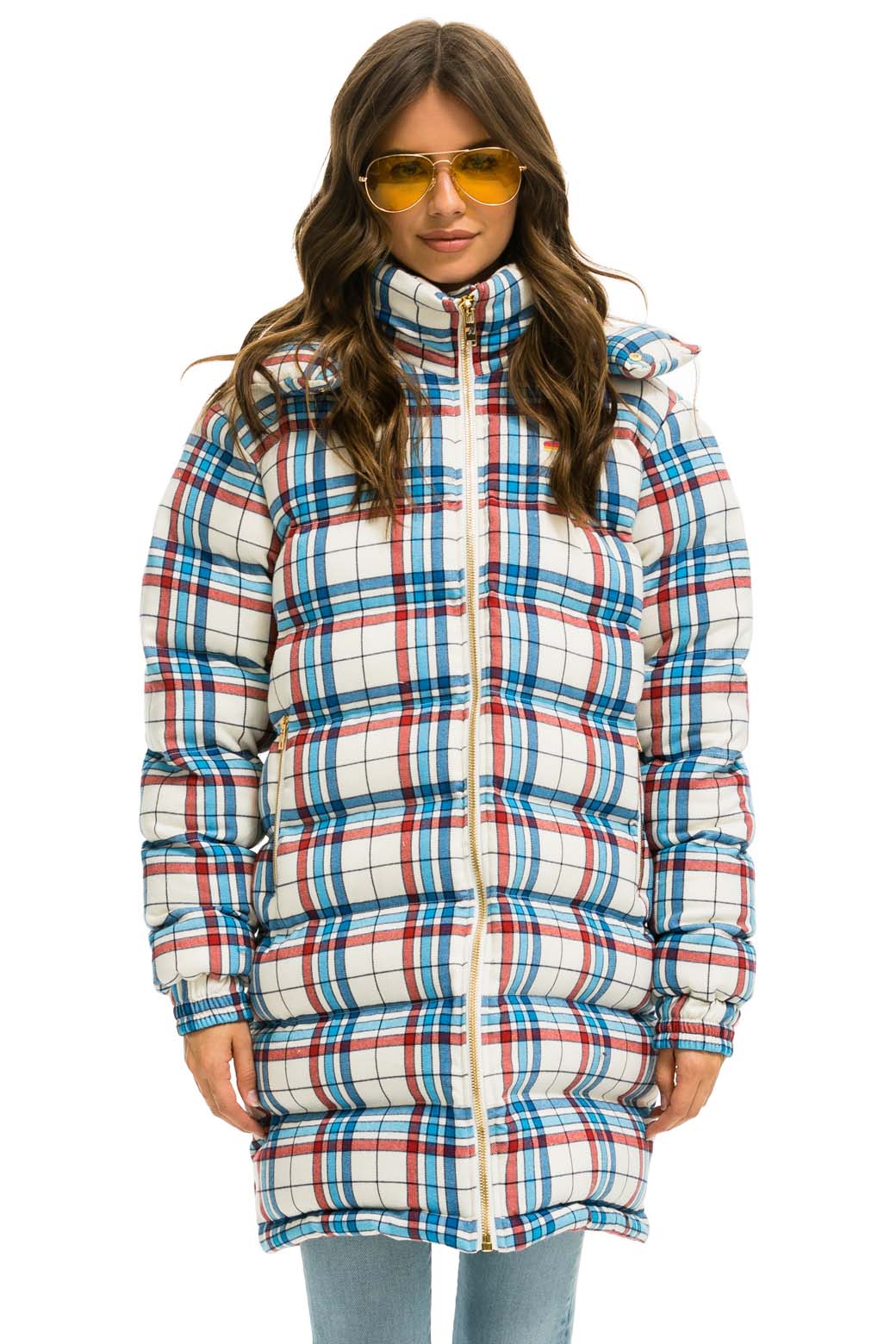 PLAID UNISEX LONG TREKKER JACKET - MONTAUK PLAID+LOGO SOCK - WHITE+LOGO RAINBOW VINTAGE TRUCKER HAT