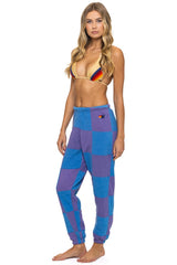CHECK QUILTED SWEATPANTS - LAVENDER // OCEAN