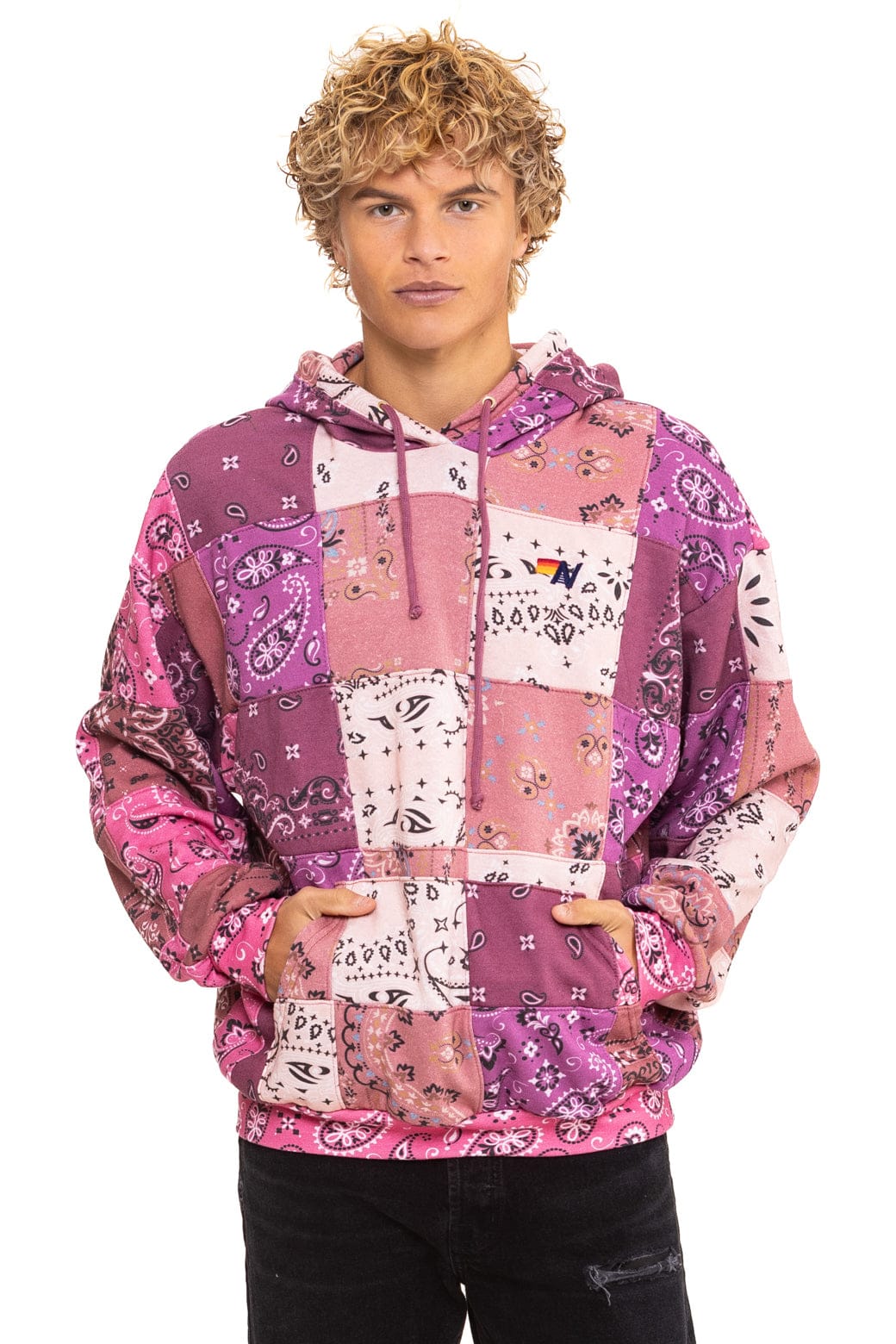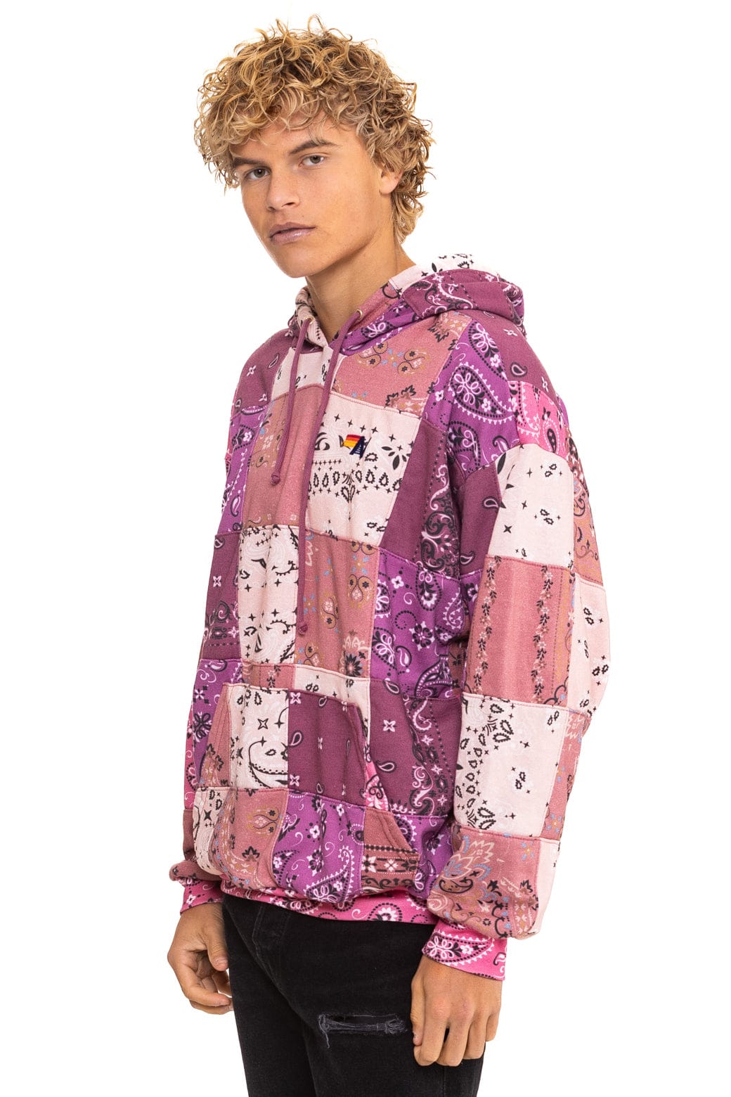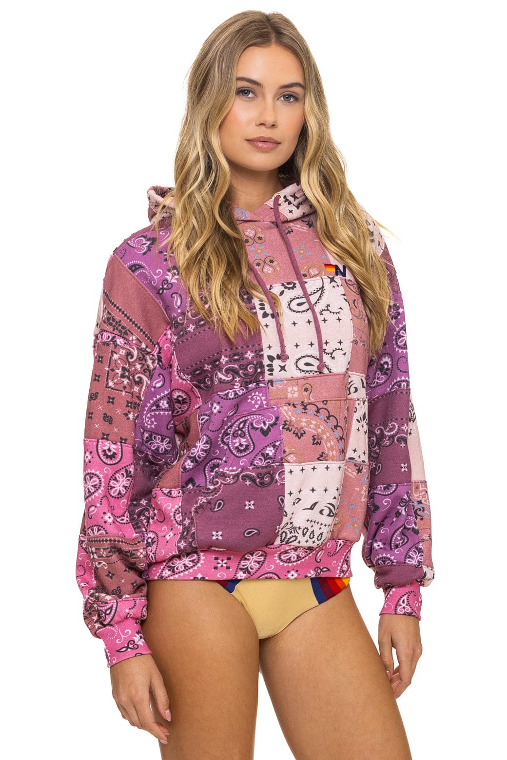BANDANA QUILTED RELAXED PULLOVER HOODIE - PINK