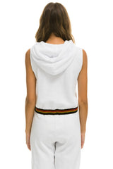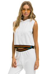 LOGO STRIPE SLEEVELESS CROP PULLOVER HOODIE - WHITE