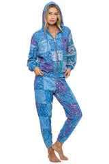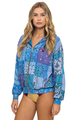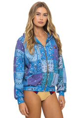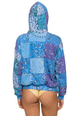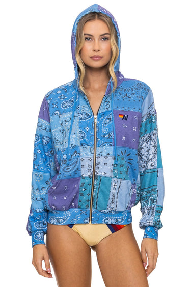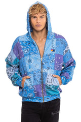 BANDANA QUILTED RELAXED ZIP HOODIE - BLUE