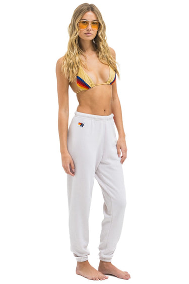 5 STRIPE RELAXED ZIP HOODIE - DOVE GREY // NEON+LOGO SOCK - WHITE+LOGO RAINBOW VINTAGE TRUCKER HAT