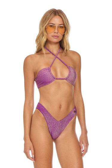 SPARKLE ST TROPEZ BANDEAU HALTER BIKINI TOP - GRAPE