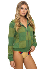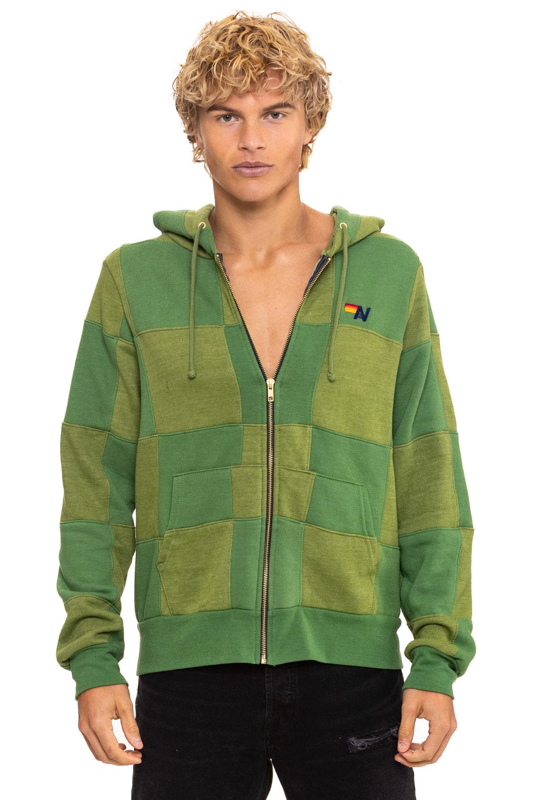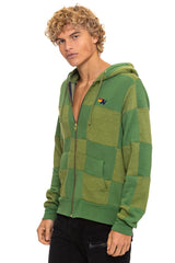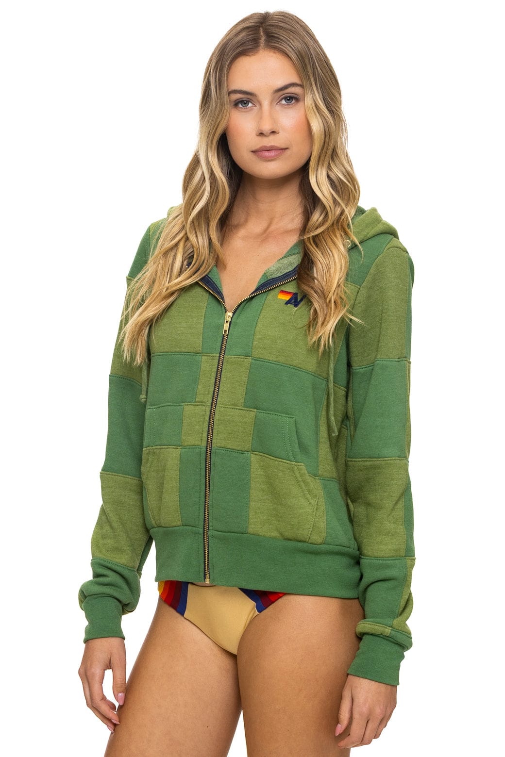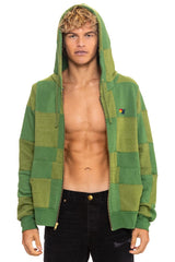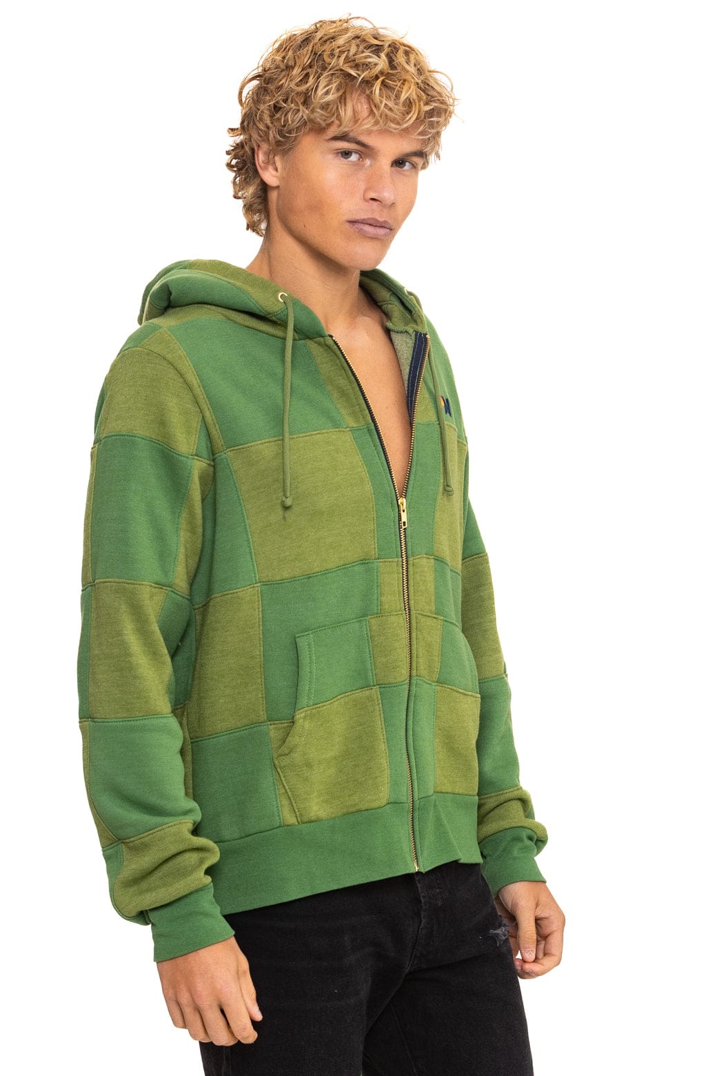 CHECK QUILT ZIP HOODIE - JUNGLE GREEN // PALM
