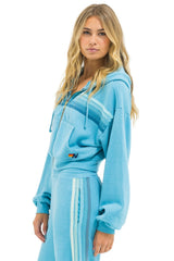 5 STRIPE CROPPED ZIP HOODIE RELAXED - AQUA // AQUA