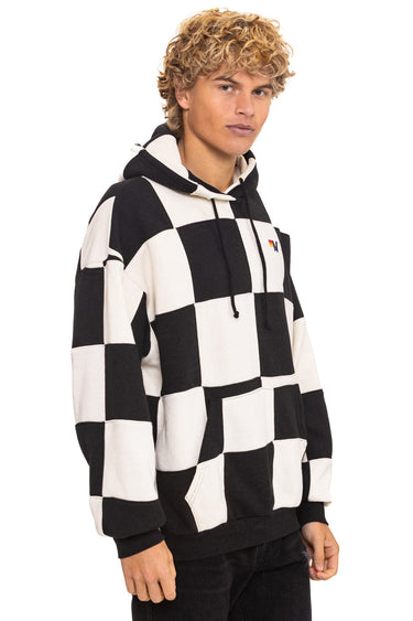 CHECK QUILT RELAXED PULLOVER HOODIE - VINTAGE WHITE // BLACK