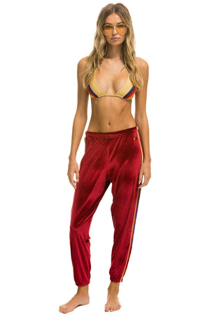 The Aviator Nation Velvet Sweatpants have arrived. We've developed the highest quality velvet fabric to make these yummy pants not only extremely comfortable but a total eye catcher. Cozy up in velvet and turn heads everywhere you go. All velvet sweatpants have a small Aviator Nation logo embroidered on the thigh. If you are a true rock star you should grab the matching hoodie and rock it as a set!