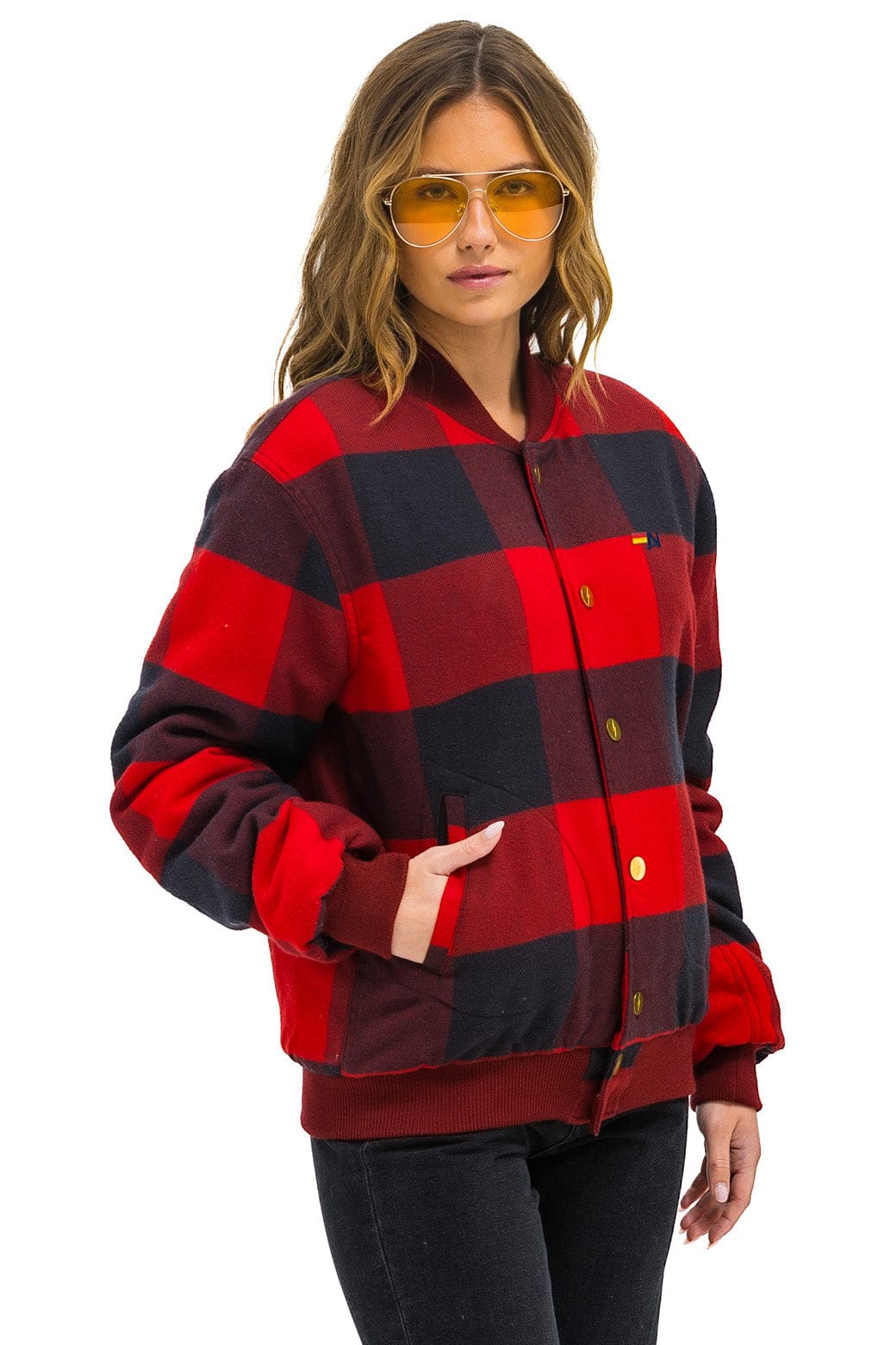 PLAID UNISEX VARSITY JACKET - BUFFALO PLAID
