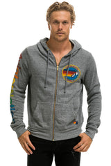 AVIATOR NATION MIAMI HOODIE - HEATHER GREY+LOGO SOCK - WHITE+LOGO RAINBOW VINTAGE TRUCKER HAT