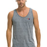MEN'S BASIC TANK - HEATHER GREY+LOGO SOCK - WHITE+LOGO RAINBOW VINTAGE TRUCKER HAT