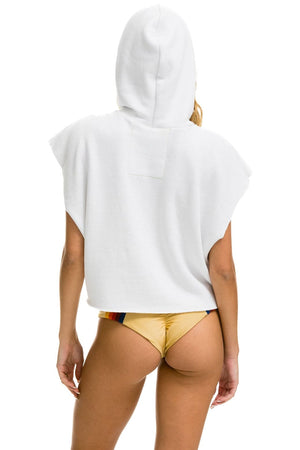 SMILEY SUNSET SLEEVELESS RELAXED CROPPED PULLOVER HOODIE - WHITE